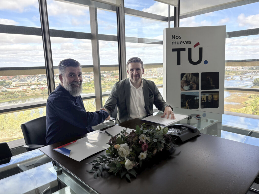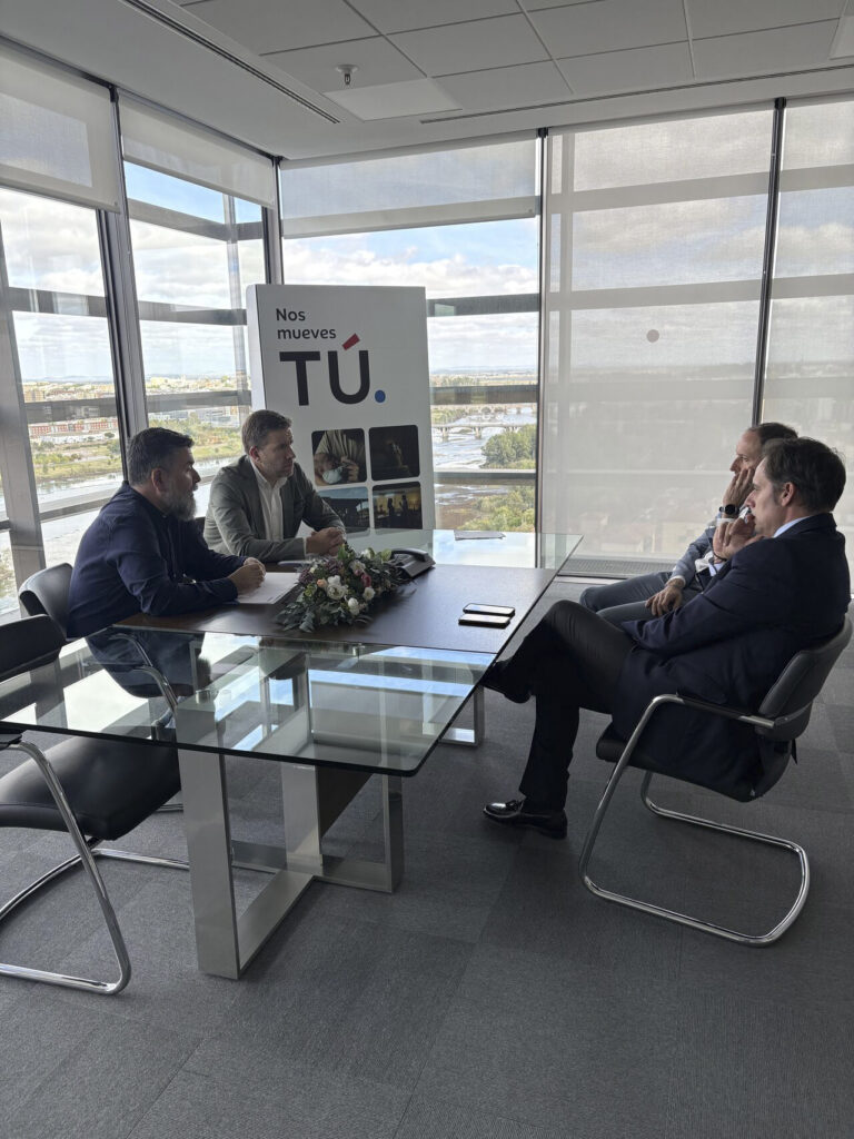 En la firma han participado David Sanz, presidente de COMERSAN, y por parte de Ibercaja, Roberto Ledesma Hernández, director territorial, acompañado por Antonio Fernández Martín, director de zona, y Antonio Igual, director de la oficina de San Vicente de Alcántara.